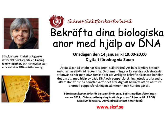 Bekräfta dina biologiska anor med hjälp av DNA, onsdagen den 14 januari kl. 19.00-20.00.